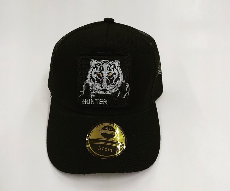 Cappello ricamato con visiera e, retina posteriore traspirante e sistema di allacciamento a bottoncini.