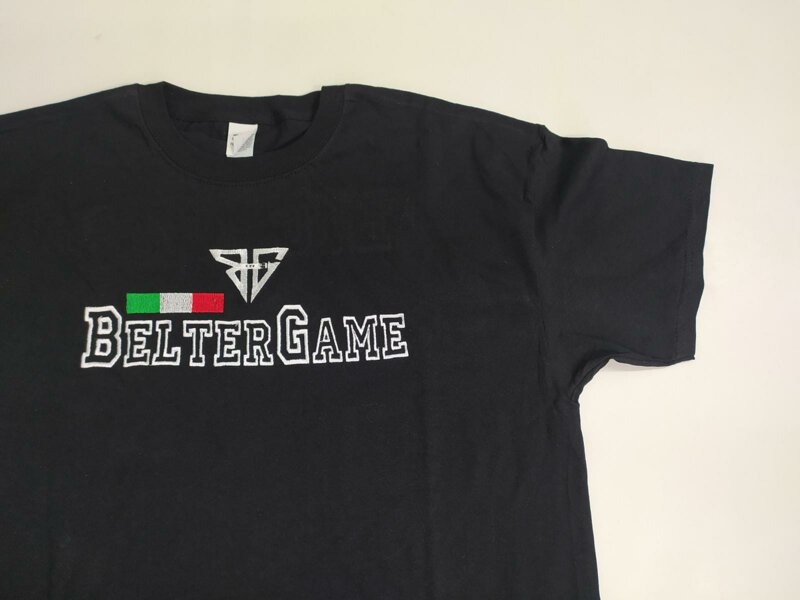 T-shirt 100% cotone con ricamo a centro petto con logo della nostra divisione "belt"